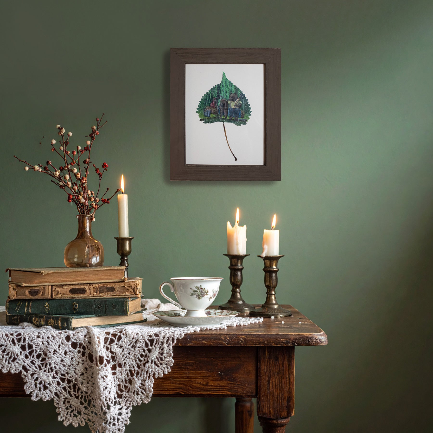 Your artwork arrives matted to an 8x10 natural white mat board and a museum-quality frame—crafted in solid wood with UV-protected, reflection-control acrylic glass. This frame option guards the painting from fading while offering a soft, glare-free view.