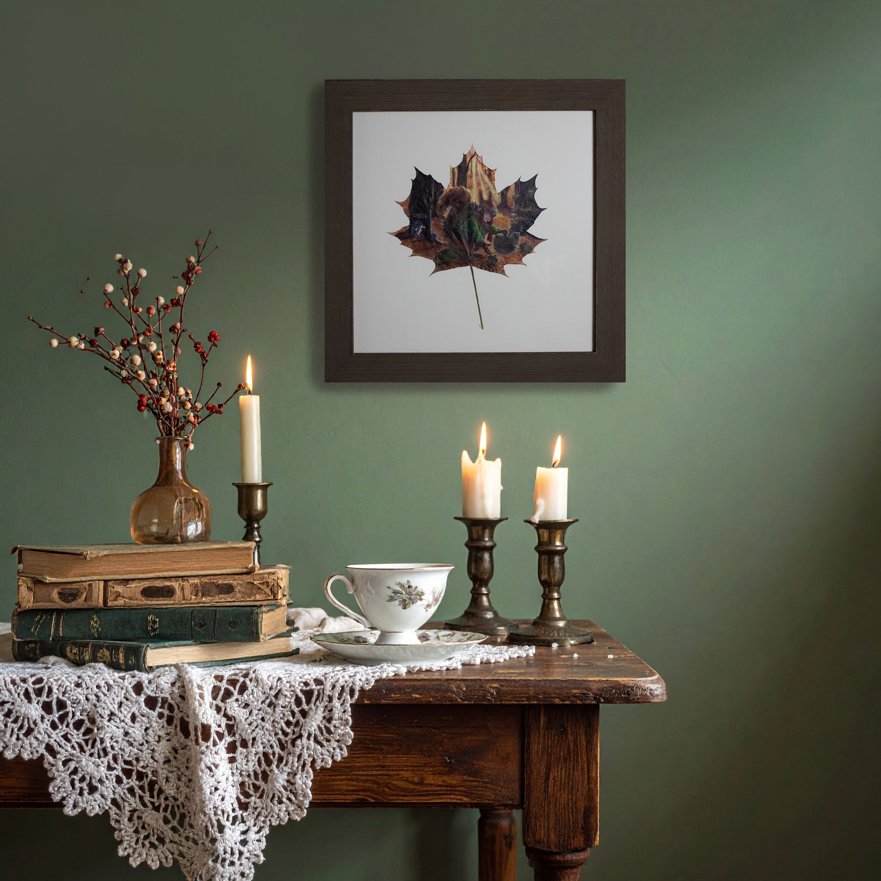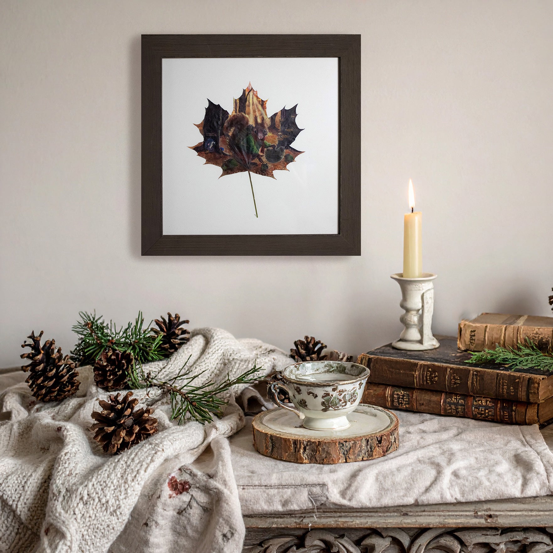 Ideal for cozy corners, nurseries, or gallery walls, The Nut Gatherer is a keepsake that adds warmth and whimsy wherever it’s displayed. A treasured addition for collectors, nature lovers, and anyone drawn to cozy autumn charm.