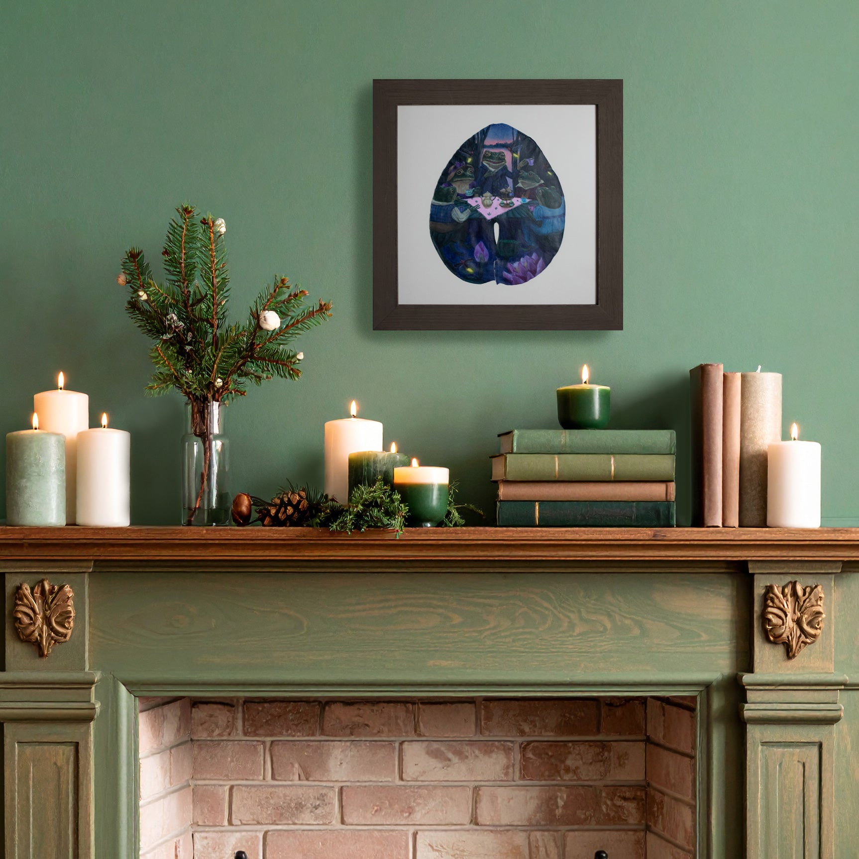 Your artwork arrives matted to an 12x12 natural white mat board and a museum-quality frame—crafted in solid wood with UV-protected, reflection-control acrylic glass. This frame option guards the painting from fading while offering a soft, glare-free view.